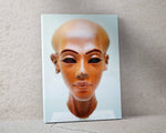 Nefertiti, an 18th Dynasty Egyptian queen, led a religious revolution with her husband, Pharaoh Akhenaten, worshipping Aten, the sun disc, as the sole god. During their reign, Egypt reached its zenith of wealth. They had six daughters. The depicted quartzite bust, crafted around 1350-1340 BC, represents one of Nefertiti's six daughters. The bust lacks it's eye and eyebrow inlays, and it's 21-centimeter height showcases the elongated skull, a trait among the Nefertiti family.