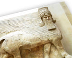 The Lamassu, an Assyrian protective deity, takes the form of a human-bull hybrid with a human head, bull's body, and bird-like wings. Originating from Sumerian times, it was initially represented by a meditating goddess associated with Ishtar in the holy center of Uruk. Placed at palace entrances facing streets, these colossal sculptures served as protective guardians. Lamassu, embodying zodiacs or constellations, found a role in safeguarding homes when engraved on clay tablets buried beneath doorways. This winged motif, dating back to Ebla around 3000 BC, became distinct in Assyria around 950 BC, symbolizing power in the Near East.