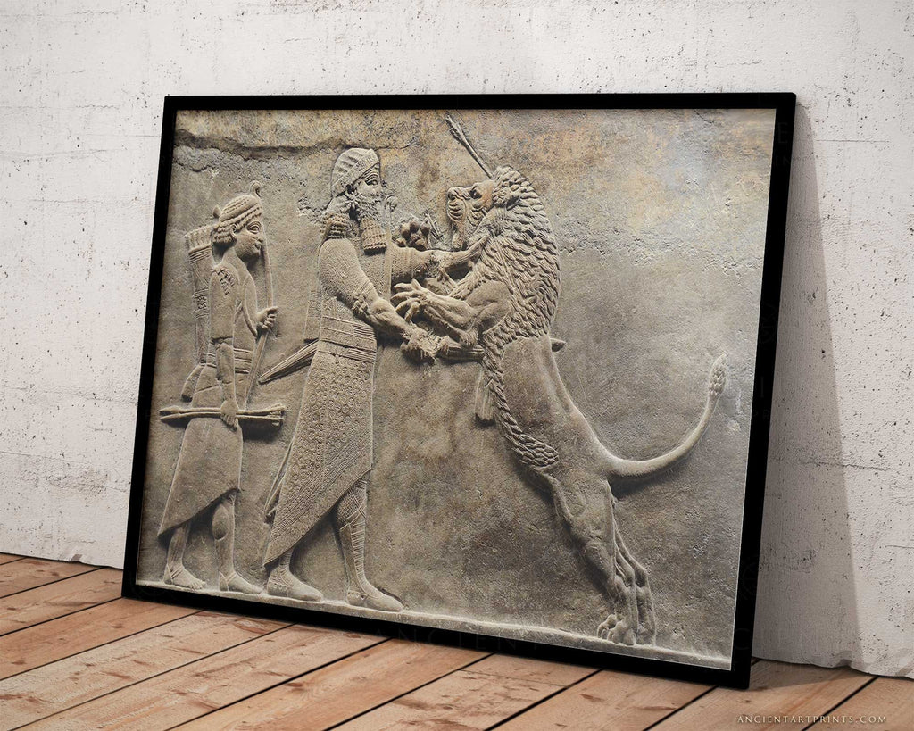 In ancient Assyria, Lion Hunting was an exclusive sport for Kings, symbolizing their power and duty to protect. The sculpted reliefs from around 645β635 BC in Ashurbanipal's palace at Nineveh, Northern Iraq, depict this tradition, possibly involving captive-bred lions released in arenas. Ashurbanipal's Royal Library of Nineveh, discovered in 1849, contained 30,000 cuneiform clay tablets, offering insights into medicine, astronomy, literature, and hymns to Anunnaki Gods. Notably, the collection included the Enuma Elish creation story and the tale of Enki creating the first human, Adamu/Adapa.