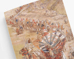 James Tissot’s "The Caravan of Abraham" vividly captures the biblical patriarch leading his family and possessions through the desolate wilderness in obedience to God’s call. The painting, rich in detail and atmosphere, portrays a sprawling caravan of camels, servants, and travelers moving under a vast, pale sky that evokes the hardships and faith required for the journey. Tissot’s meticulous watercolor technique brings the scene to life, emphasizing the humanity and perseverance of Abraham as he embarks on a path of divine promise. The artwork beautifully blends realism with reverence, offering a timeless glimpse into this pivotal biblical moment.