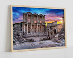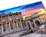 The Library of Celsus in Ephesus, Turkey, was built around 110 CE in honor of the Roman senator Tiberius Julius Celsus Polemaeanus. Once housing over 12,000 scrolls, it was one of the largest libraries of the ancient world. Its impressive two-story façade—carefully reconstructed in the 1970s—features statues symbolizing wisdom, knowledge, intelligence, and virtue. Uniquely, it also served as a mausoleum, with Celsus buried in a crypt beneath the library, making it both a monument to learning and a tomb.