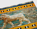 The Ishtar Gate, erected by Babylonian King Nebuchadnezzar II around 575 BC, served as the eighth and primary entrance to ancient Babylon, once the world's largest city situated 53 miles south of present-day Baghdad. Standing at 38 feet tall, this magnificent gateway was adorned with vibrant blue lapis lazuli glazed bricks, featuring striking depictions of approximately 120 lions and 575 dragons/bulls. Named after the ancient goddess Ishtar/Inanna, the gate also acknowledged deities like Adad and Marduk, symbolizing Ishtar with lions, Adad with bulls, and Marduk with dragons. The infamous gate was once considered one of the original seven wonders of the ancient world.